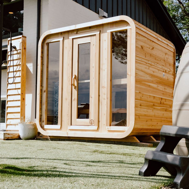Our flagship Cabin Sauna with room for up to six people. Perfect for hosting and it being centerpiece of your wellness oasis.