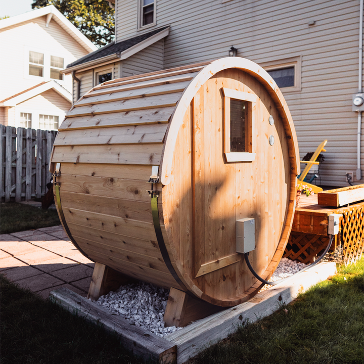 The Eddy Barrel is a our classic traditional western red cedar barrel sauna with room for up to two people that offers a simple way to bring sauna therapy to your daily lifestyle. With its barrel shape comprised of cedar, there is virtually no maintenance, and has a long lifespan.