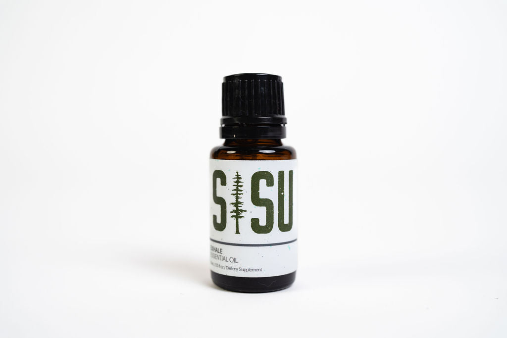 SISU Exhale Essential Oil - Blend of peppermint, tea tree, lemon, laurel, eucalyptus, and clove oils. Therapeutic-grade aromatherapy to enhance your sauna experience and daily wellness routine.