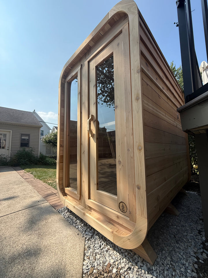 The Charlie Cabin is our modern and compact cabin sauna with room for up to four people that offers a simple way to bring sauna therapy to your daily lifestyle. This cabin style sauna is made of red cedar, requiring virtually no maintenance and giving it an impressively long lifespan.